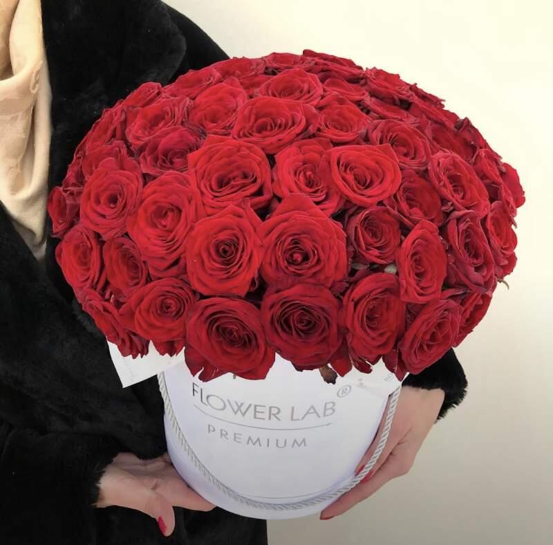 Состав: красная роза, белая бархатная коробка FlowerLab Premium